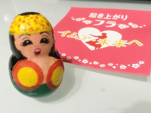 管理人Kです。以前より気になっていた起き上がり小法師のフラガール「起き上がりフラ」がようやく我が家にやって参りました。