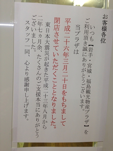 先日ご紹介しました、神奈川の湘南(藤沢駅)にある、「東日本大震災 被災地復興支援 観光物産プラザ」の閉店の日が確定したそうです。