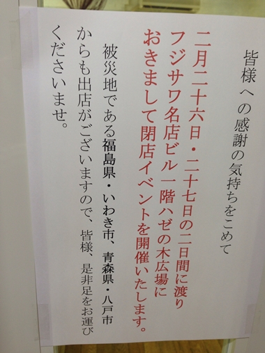 また来月2/26.27は同じ藤沢名店ビルの1階にあるハゼの木広場で、感謝閉店イベントが開催されるそうです