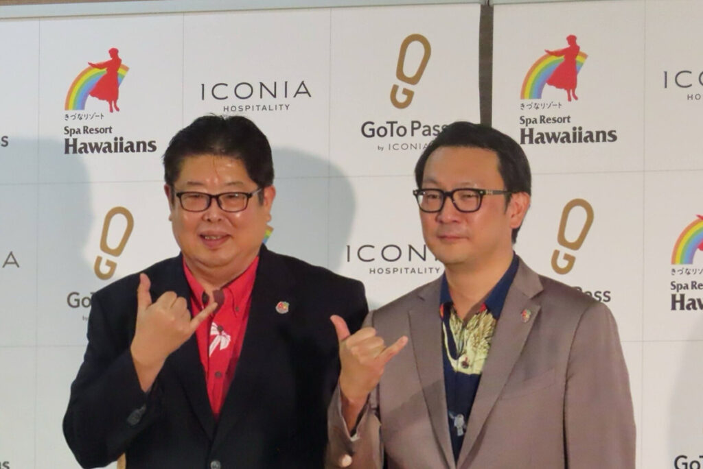 登壇されたのは、アイコニア・ホスピタリティ代表取締役会長・常磐興産 代表取締役会長 山本 俊祐氏と常磐興産 取締役社長執行役員 関根一志氏