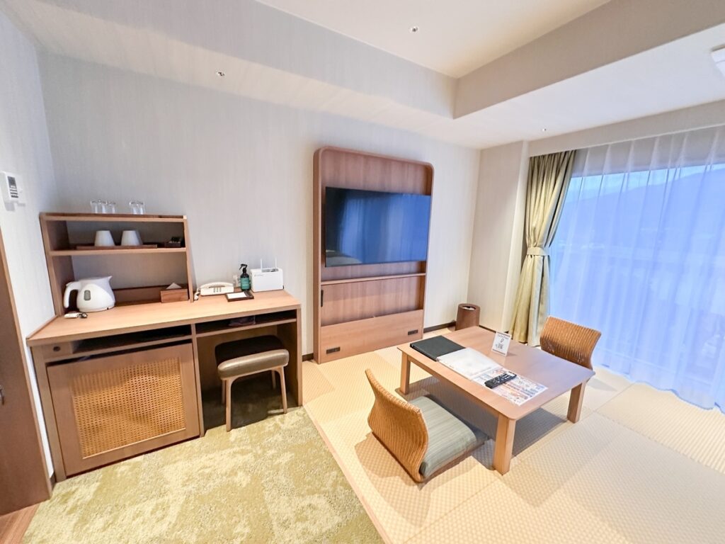 ベッドもありますが、座椅子と座卓で落ち着いて過ごすこともできます。