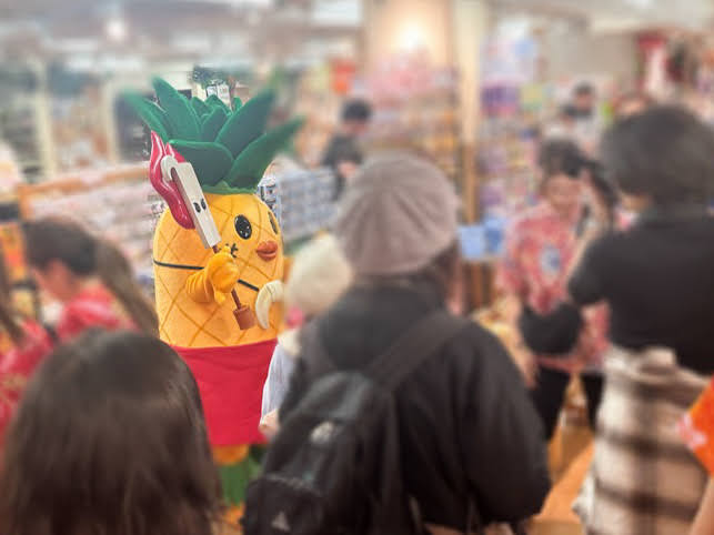お披露目当日から、パナシバくんグッズも発売され、自らデモ販売を。たちまちお客さんに囲まれる人気ぶりでした。